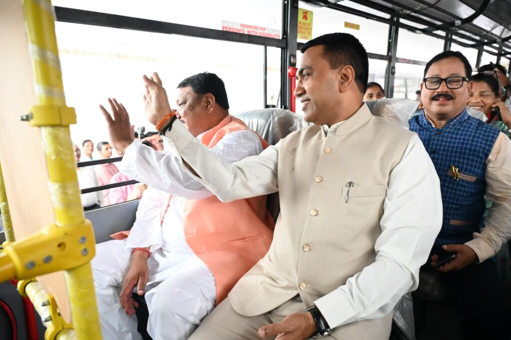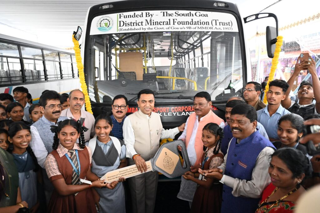Union Minister for Tribal Affairs, Government of India, Shri. Jual Oram in presence of Chief Minister, Dr. Pramod Sawant ; Speaker of Goa Legislative Assembly, Shri Ramesh Tawadkar; Minister for Social Welfare, Shri. Subhash Phal Dessai, Rajya Sabha MP, Shri. Sadanand Shet Tanavade & MLA, Shri. Dr. Ganesh Gaonkar flagged off Two buses for providing transport facility free of cost for students under District Mineral Fund