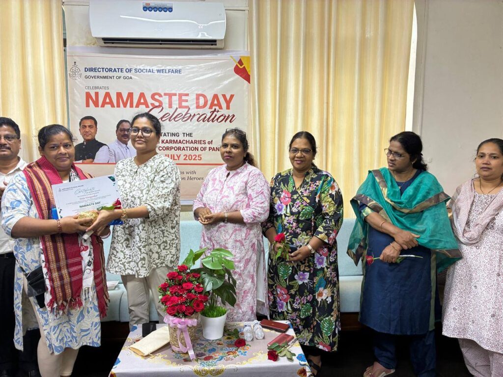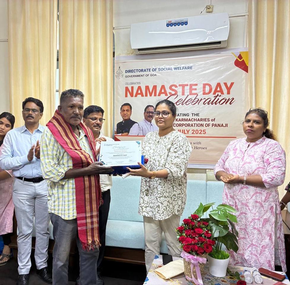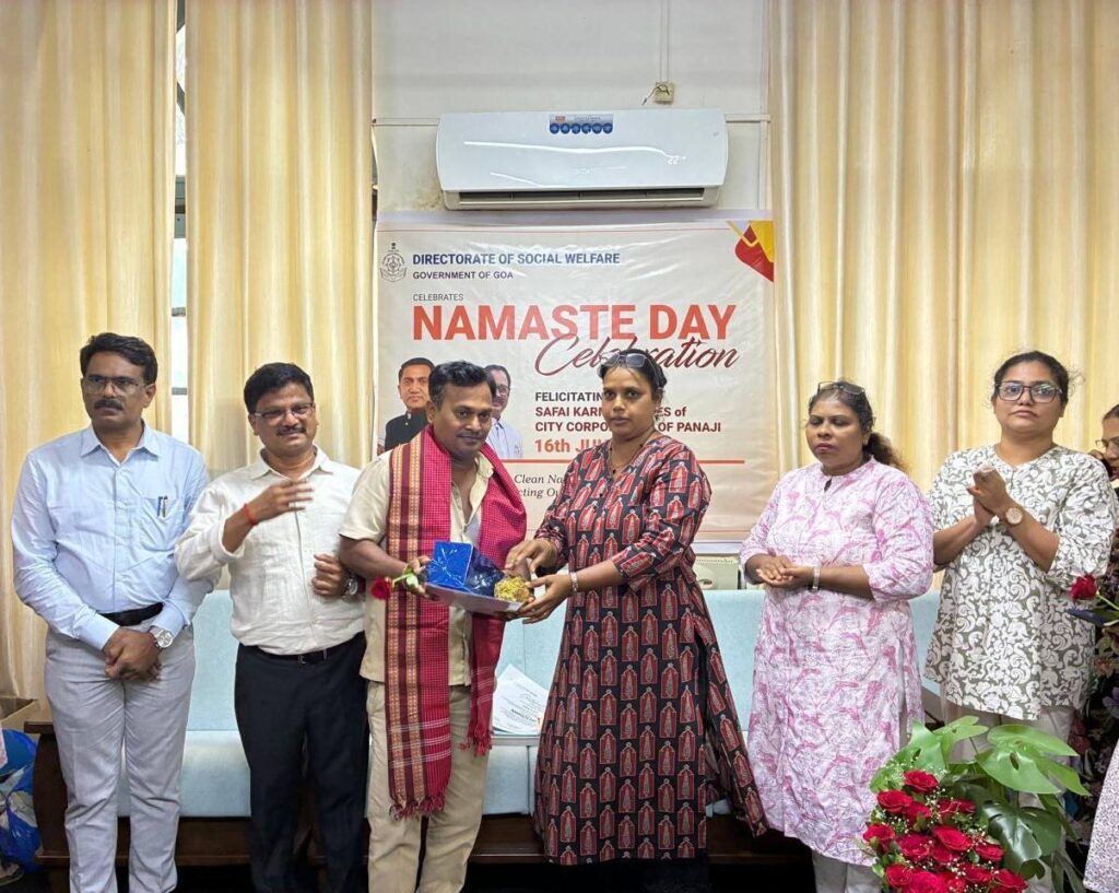 Directorate of Social Welfare, Goa the nodal office for the NAMASTE scheme (National Action for Mechanized Sanitation Ecosystem) a central scheme launched by the Ministry of Social Justice and Empowerment and the Ministry of Housing and Urban Affairs, felicitated Safai Karmacharis (sanitation workers) of City Corporation of Panaji, during the Namaste Day celebrations at Panaji. The NAMASTE scheme ensures the safety and dignity of sanitation workers in India by promoting safe and mechanized sanitation practices.