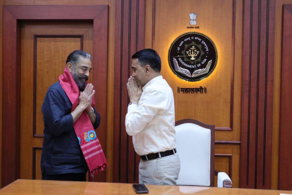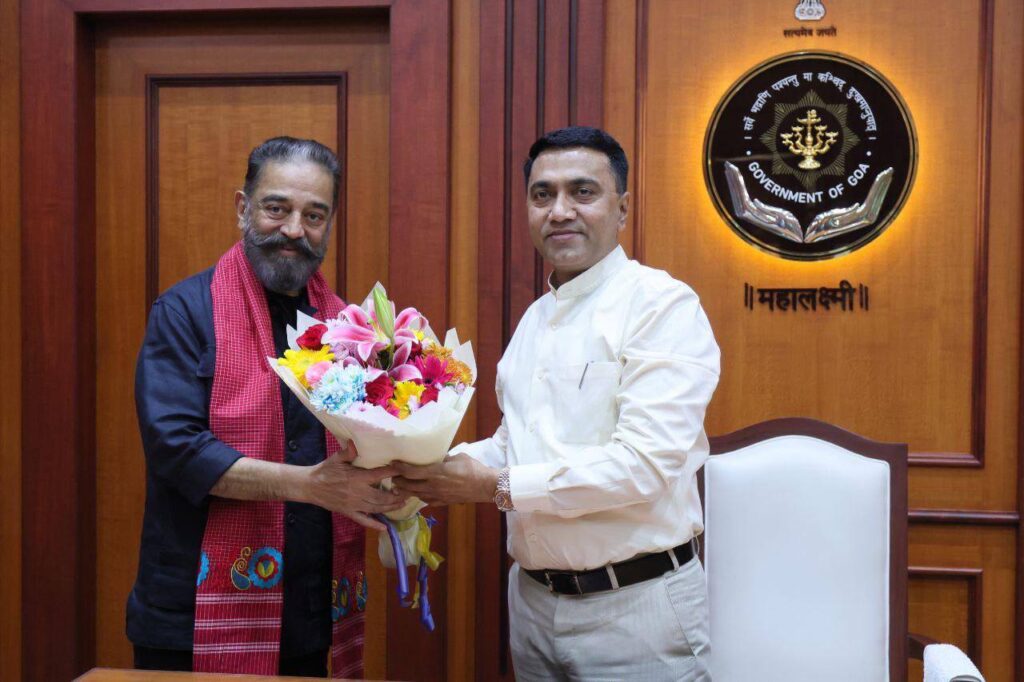 Legendary Actor, Director and MP Shri Kamal Haasan met and interacted with Chief Minister Dr. Pramod Sawant during the 56th IFFI in Goa, at Mahalaxmi Altinho, Panaji.