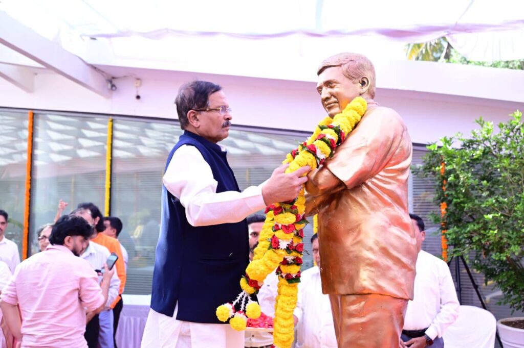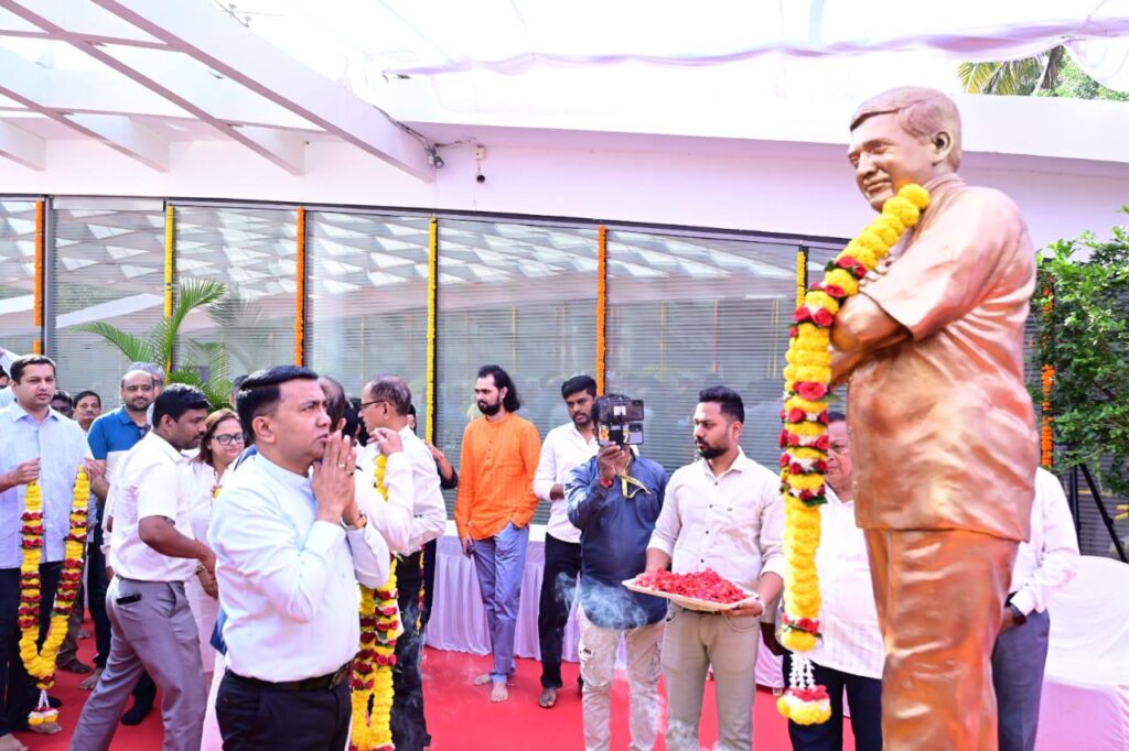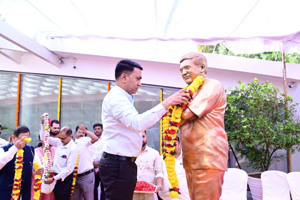 Chief Minister, Dr. Pramod Sawant along with Union MoS for Power, Shri. Shripad Naik, Chief Secretary, Dr. V. Candavelou, IAS, Former MLA, Shri. Damu Naik & others, paid homage to Former Defense Minister, Government of India and Former Chief Minister of Goa, late Shri. #ManoharParrikar on his Birth Anniversary by garlanding his statue & also paid floral tributes at his Samadhi at Smriti Sthal, Miramar.