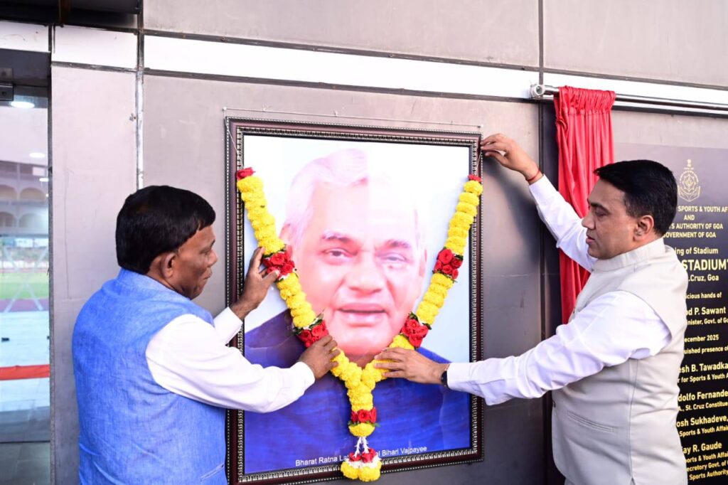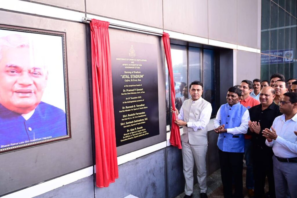 Chief Minister, Dr. Pramod Sawant attended the renaming ceremony of the Athletic Stadium to ‘ATAL STADIUM’ at Cujira, St. Cruz, in the presence of dignitaries including Minister for Sports & Youth Affairs, Shri. Ramesh Tawadkar and others.