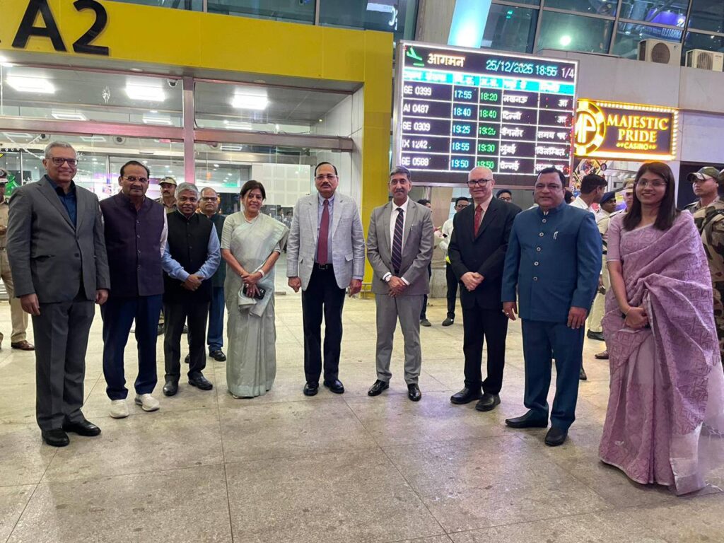 Protocol Minister Shri. Mauvin Godinho welcomed the Hon’ble Chief Justice of the Supreme Court of India, Shri Surya Kant, upon his arrival at Dabolim Airport.