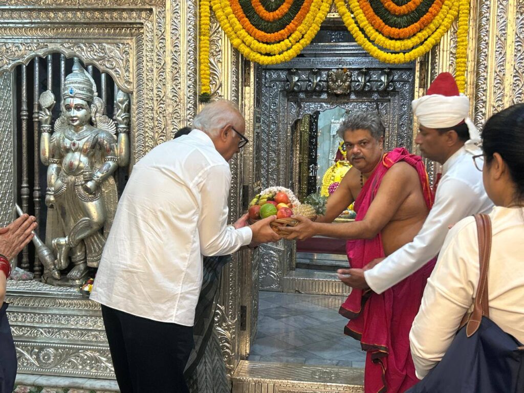 Governor, Shri Pusapati Ashok Gajapathi Raju along with First Lady, Smt. Suneela Ashok Gajapathi visited and invoked blessings at Shri Manguesh temple, Mangeshi, Ponda.