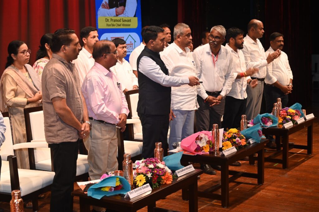 Chief Minister, Dr. Pramod Sawant lit the traditional lamp at the ‘Sarkar Tumchya Dari’ programme held at the Rajiv Gandhi Kala Mandir, Ponda, in the presence of Minister for WRD, Shri.