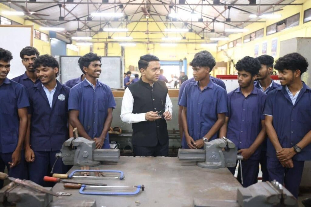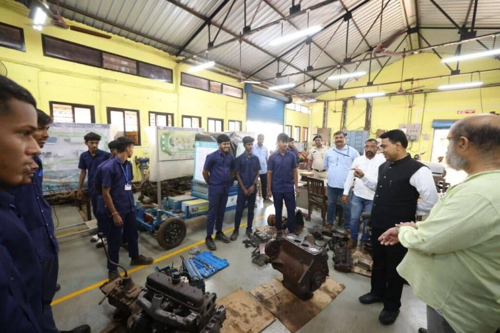 Chief Minister, Dr. Pramod Sawant visited and inspected the Government Industrial Training Institute, Cacora and Interacted with the students from Sewing Technology, Basic Cosmetology, Mechanic Diesel, and trainees under the PM Vishwakarma Yojana.
